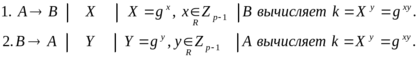 и передает его участнику В в виде kB(k), где kв — открытый ключ участника В. [1]