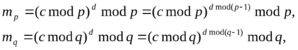 где uq1(mod p). Значение и можно вычислить заранее и рассматривать в качестве компоненты закрытого ключа.