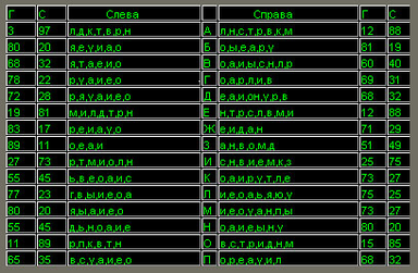 | Ч | Т | Г | Л | Я | В | Е | Х | А | Ю | М | _ | Ш | З | Р | Б | Ц | У | К | Ф | Ы | С | П | И | Д | Н | Ь | О | Ж | Э | Щ |