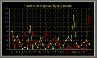 Лидер по числу повторений символ Щ. Естественно предположить, что он заменяет символ пробел _ открытого текста. Пробел – наиболее частый символ текста. Второй по частоте символ, как правило, буква О. Символ З заменим на О.