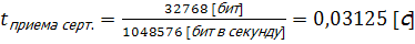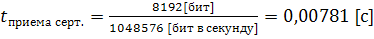 tприема серт. + tпроверки серт. = 0,01563 + 0,0874 = 0,1030 (с)