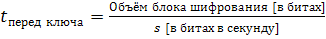 tпередачи ключа = 0,00003 (с) << 0,2 (мс) - временем можно пренебречь