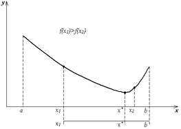 если f(x1) > f(x2), то x* Î [x1, b], (1.3)