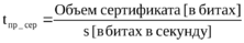 Время передачи считается аналогично шагу 1, но вместо объема сертификата подставляется объем ключа.