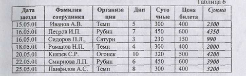 Для ввода информации в базу данных «Командировки» сведения представлены в табл. 6.