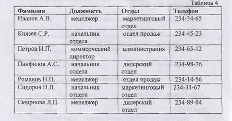 Для ввода информации в базу данных «Сотрудники» сведения представлены в табл. 4.