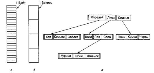 Рис. 6.1. Три типа файлов: последовательность байтов (а); последовательность записей (б); дерево (в)