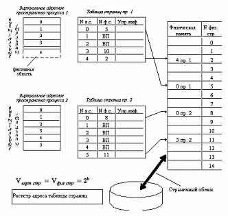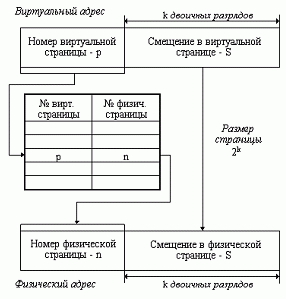 Виртуальное адресное пространство каждого процесса делится на части одинакового, фиксированного для данной системы размера, называемые виртуальными страницами. В общем случае размер виртуального адресного пространства не является кратным размеру страницы, поэтому последняя страница каждого процесса дополняется фиктивной областью.