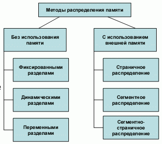 Все методы управления памятью могут быть разделены на два класса: методы, которые используют перемещение процессов между оперативной памятью и диском, и методы, которые не делают этого