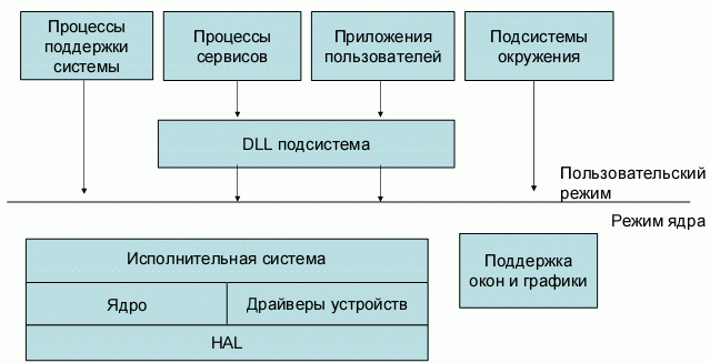 Исполнительная система Windows - содержит базовые сервисы ОС, обеспечивающие управление памятью, процессами и потоками, защиту, ввод/вывод и взаимодействие между процессами.