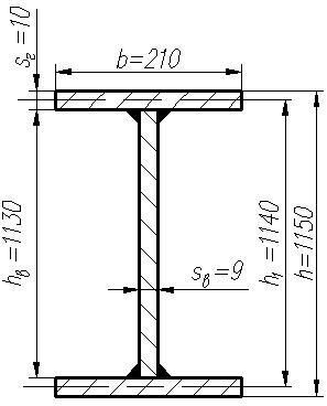 Отрицательное значение момента инерции горизонтальных листов указывает на то, что сечение балки подобрано нерационально.