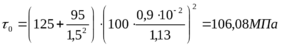 τ0 = 106,08 МПа – касательное напряжение от растягивающей силы