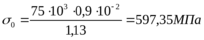 σ0 = 597,35МПа – номинальное напряжение от растягивающей силы