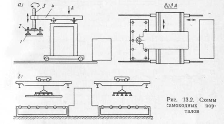 рис. 13.2,а. Контейнеры с заготовками подают мостовым краном и