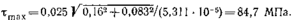 т = 0,025/(0,7 • 0,01 • 0,1 (0,3 + 0,01)+0,7 • 0,01 • 0,33/6) =77,6 МПа.