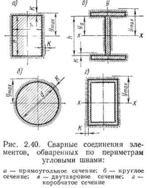 Расчет прочности прикрепления произвольных профилей двутавровых, коробчатых (рис. 2.40, в, г), тавровых и других производится так же, как в случаях, рассмотренных выше, на основе формул (2.60) и (2.61).