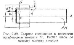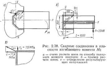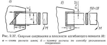 Рассмотрим расчет прочности швов, лежащих в плоскости изгибающего момента (рис. 2.37).