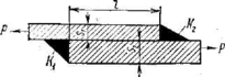 где Р г — усилие в шве, находящемся на элементе меньшей толщины Sj; Р.2 — усилие в шве, находящемся на элементе большей трещины s.2; I—длина нахлестки.
