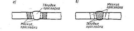 Рис. 3.12. Твердые и мягкие прослойки в сварных соединениях