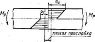 Ркс. 3.15. Схематичное распределение напряжений при изгибе полосы с мяг-' кой прослойкой
