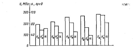 Рис. 3.21. Пределы прочности и угол загиба сварных соединений магниевых сплавов: