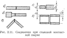 Соединения при стыковой сварке. Контактная стыковая сварка имеет огромное распространение в различных конструкциях. Особенно эффективно ее применение при сварке изделий в массовом производстве, например арматуры железобетона, типизированных конструкций рам, продольных швов труб. Хорошо свариваются конструкции из низкоуглеродистых, углеродистых, низколегированных и некоторых высоколегированных сталей с площадью поперечного сечения до нескольких сотен квадратных сантиметров.