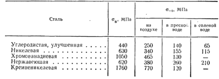 Крайне отрицательное влияние на усталостную прочность оказывает коррозионный эффект в агрессивных средах (табл. 4.2).