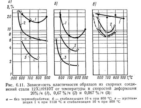 . Имитация термического цикла сварки на образцах. Методы этой группы основаны на воспроизведении термического цикла сварки на основном металле и последующем испытании образца в условиях, отвечающих режиму эксплуатации. Хотя такие методы дают количественные результаты оценки, они не в полной мере воспроизводят влияние сварки, например деформационный цикл и диффузионные процессы. Преимущество их состоит в том, что они