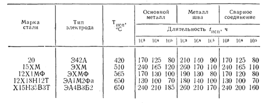 Пределы длительной прочности основного металла, металла шва и сварных соединений σд.п, МПа