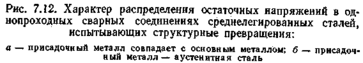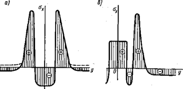 Рис. 7.13. Остаточные напряжения в швах большой толщины: