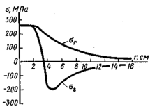 становятся сжимающими. Значения радиальных напряжений убывают примерно по закону
