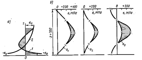 структурные превращения в которых завершаются при высоких температурах, распределение напряжений имеет вид, показанный на рис.