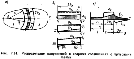 имеют осесимметричное распределение напряжений, за исключением зоны встречи начала и конца шва. В таком соединении следует различать три основных зоны: внутреннюю
