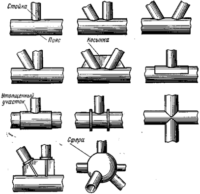 Рис. 20.12. Узлы трубчатых стержней разных типов