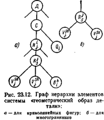 новать различные описания элементов с одинаковыми внутренними свойствами и различными внешними структурами. Эта ситуация отображает тот факт, что в реальных конструкциях конструктивное решение узла однозначно определяет совокупность конструктивных решений примыкающих деталей, а при соединении одних и тех же деталей может быть использовано различное конструктивное решение узлов. Так, например, несколько конструктивных решений узлов (рис. 23.9,а) объединяются в более сложный узел (рис. 23.9,6) соединением одноименных элементов
