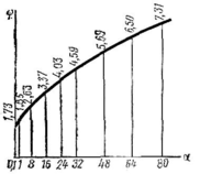 Для двутавровых балок из стали класса C 38/23 эта функция представлена графически на рис. 18.5. Для сталей классов С 44/29—С 85/75 значения коэффициента φ (рис. 18.5) следует умножить на отношение 210/R, где R — расчетное сопротивление.