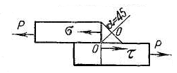 В лобовом шве возникает несколько составляющих напряжений: нормальные напряжения σ на вертикальной плоскости шва и касательные τ на горизонтальной и др.
