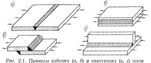 Сварные соединения, разрушение которых влечет за собой выход из строя конструкции, будем называть рабочими, а напряжения, действующие в этих соединениях, — рабочими напряжениями.