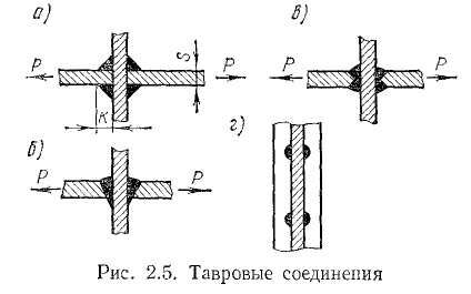 При сварке полуавтоматами тавровые соединения могут выполняться угловыми точечными швами (рис. 2.5, г). Применение точечных швов целесообразно главным образом в конструкциях с толщиной листов s ≤ 4 ÷ 5 мм.