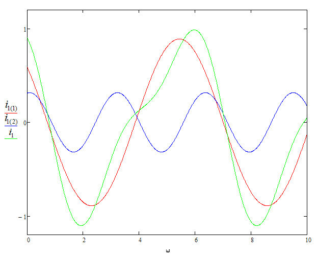 1.5 Построение графика мгновенных значений тока I1, как суммы двух гармонических составляющих.