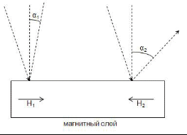 Считывание основано на эффекте Керра, когда при изменении направления намагниченности точки, изменяется угол отражения луча лазера.