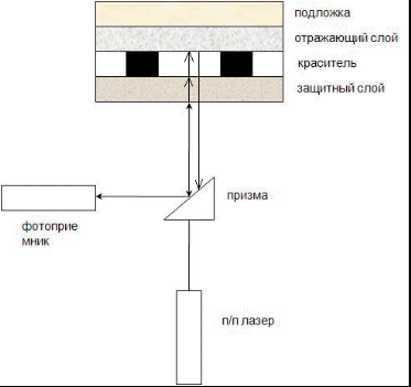 В процессе записи информации мощный луч лазера разогревает слой красителя, переводя его в аморфное состояние.