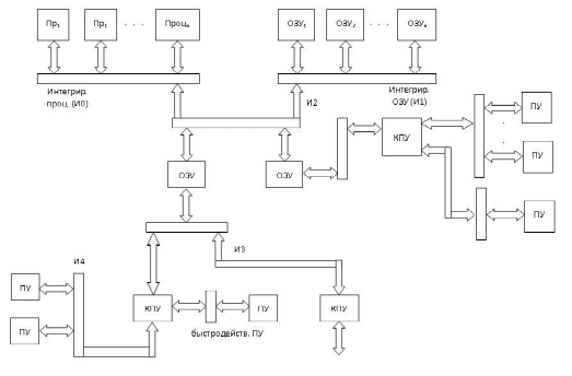 В данной структуре каждая группа устройств объединена между собой интерфейсом, параметры которого соответствует параметрам объединённых устройств.