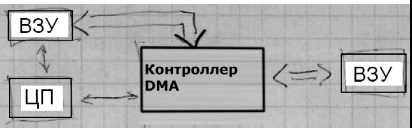 - режим прямого доступа к памяти (DMA), обмен прямым доступом (быстрые устройства). Функции:
