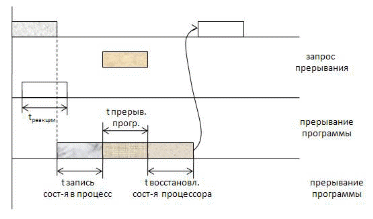 . Время обслуживания – время, затрачиваемое на подготовку прерывания и восстановление. Характеризует потерю машинного времени на организацию процесса прерывания.