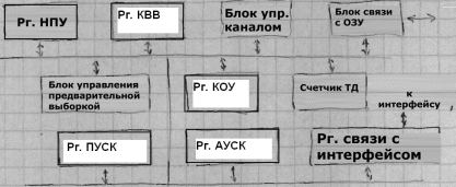 «Блок управления выборкой» осуществляет управление выбором следующего за действующим управляющего слова канала. Слово записывается в «РгПУСК» (р-р предварительного управляющего слова канала).