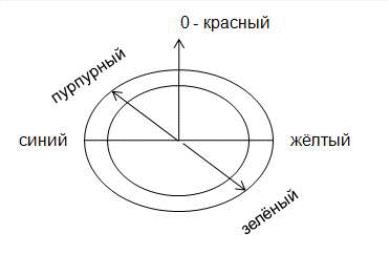2. амплитуда вектора – насыщенность точки – определяет процент прибавления к основному цвету белого.