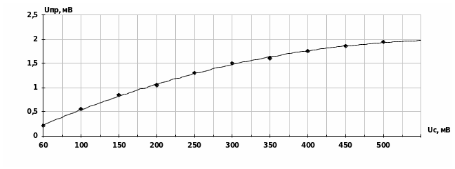 | Uс, мВ | 60 | 100 | 150 | 200 | 250 | 300 | 350 | 400 | 450 | 500 |