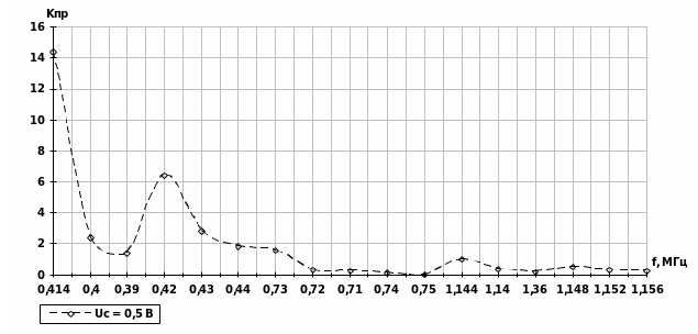 | f0, МГц | 0,414 | 0,4 | 0,39 | 0,42 | 0,43 | 0,44 | 0,73 | 0,72 | 0,71 | 0,74 | 0,75 | 1,144 | 1,14 | 1,36 | 1,148 | 1,152 | 1,156 |