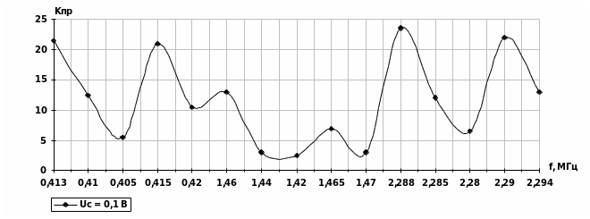 | f0, МГц | 0,413 | 0,410 | 0,405 | 0,415 | 0,420 | 1,46 | 1,44 | 1,42 | 1,465 | 1,47 | 2,288 | 2,285 | 2,28 | 2,29 | 2,294 |